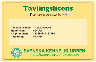 Tävlingslicensen består av ett kort där uppgifter om hundens id-nummer, namn och tävlingslicensnummer finns tryckta. Licensnumret ska uppges vid anmälan till tävling och prov och tävlingslicensen ska kunna uppvisas vid tävling/prov.